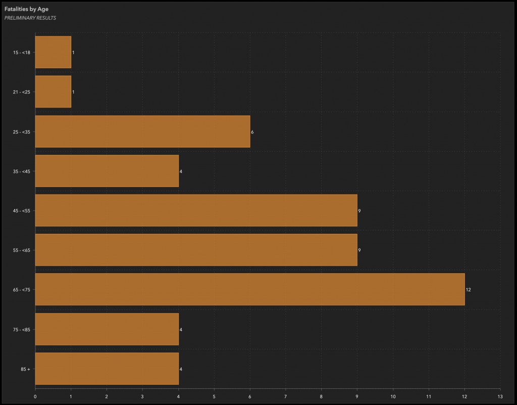 Chart from MassDOT crash portal – Pedestrian Fatalities by Age in 2020. Available at https://apps.impact.dot.state.ma.us/cdp/dashboard-view/39