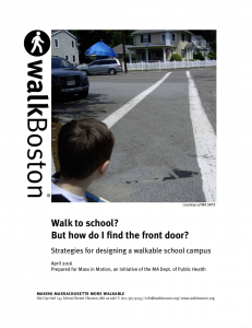As WalkBoston discovered in our work with communities across Massachusetts, even when communities build new schools in the right place, the design of school campuses still provides only limited support for walkers, and too often favors vehicles over walkers in their site layout.