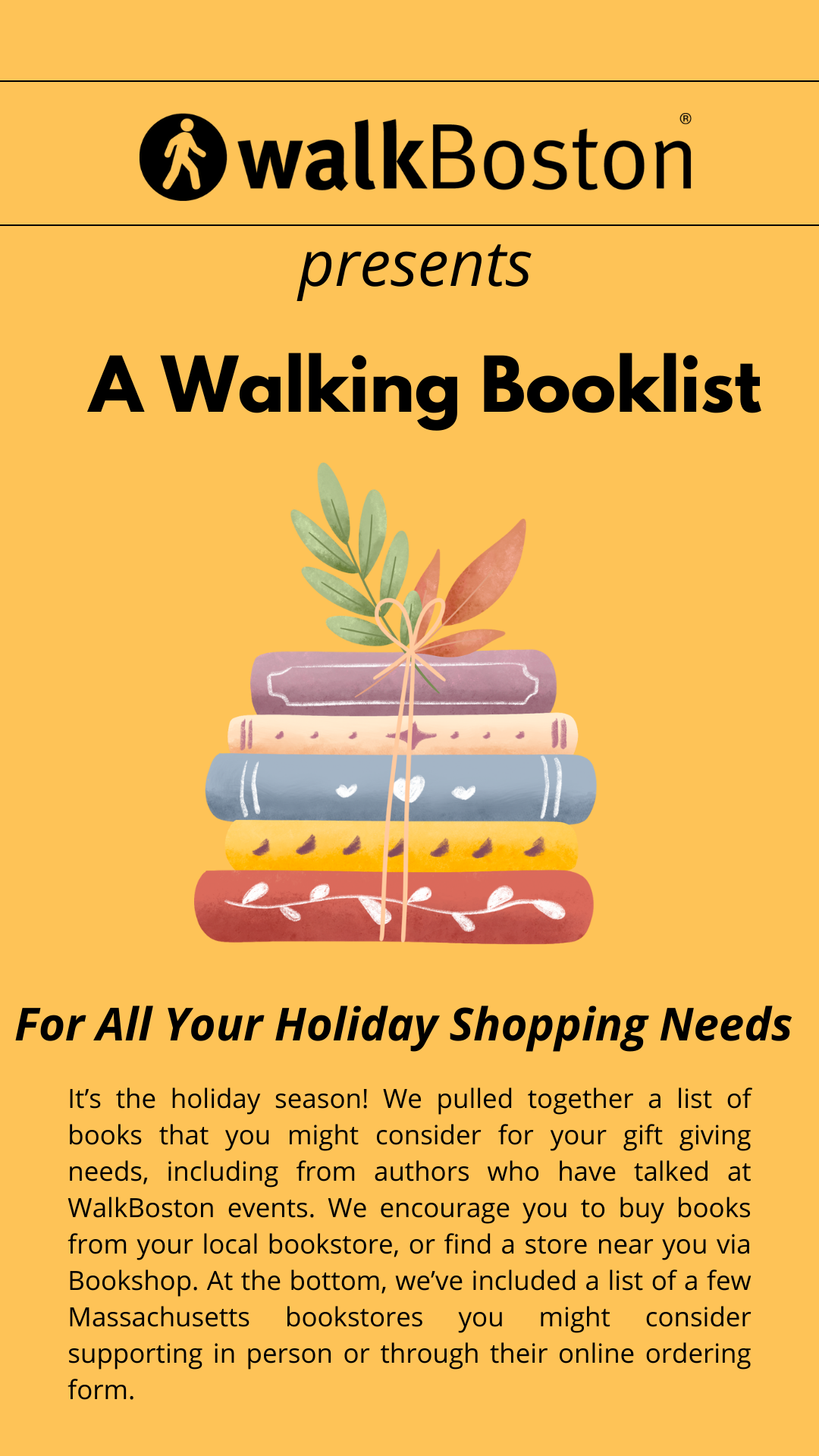 It’s the holiday season! We pulled together a list of books that you might consider for your gift giving needs, including from authors who have talked at WalkBoston events. We encourage you to buy books from your local bookstore, or find a store near you via Bookshop. At the bottom, we’ve included a list of a few Massachusetts bookstores you might consider supporting in person or through their online ordering form.