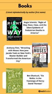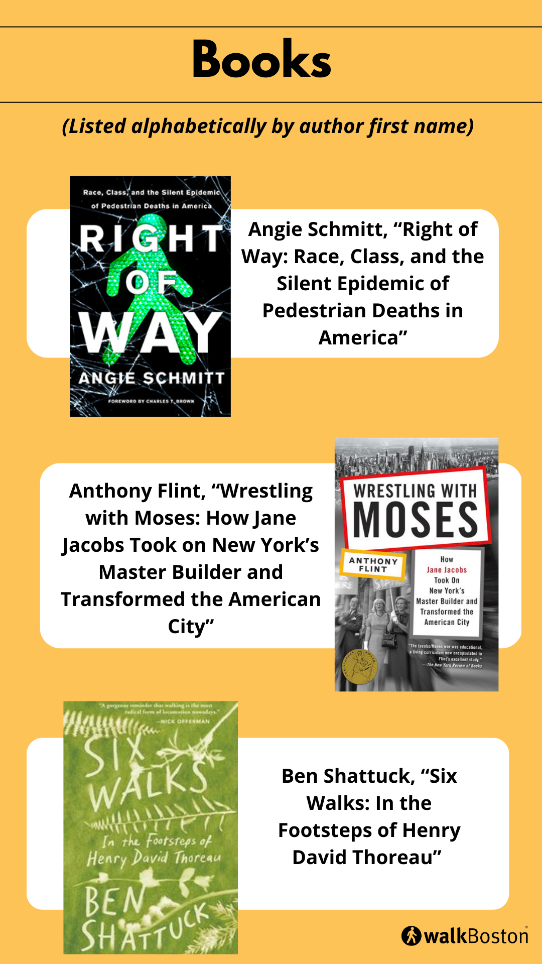 - Jeff Speck, “Walkable City (Tenth Anniversary Edition): How Downtown Can Save America, One Step at a Time”
