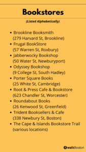 - Brookline Booksmith (279 Harvard St, Brookline)